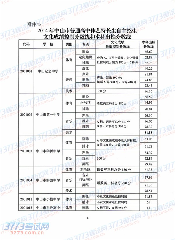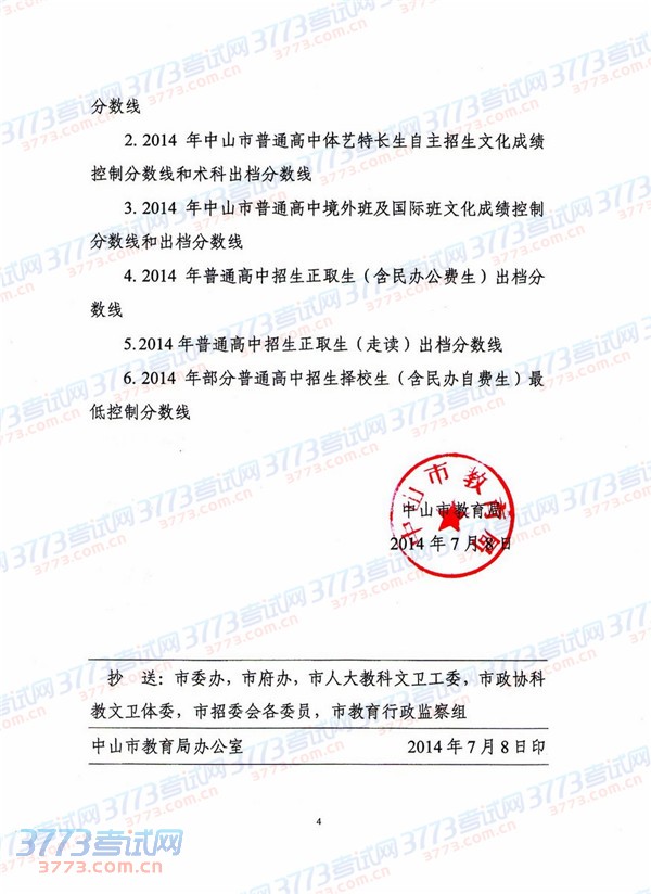 中山市教育局关于公布中山市2014年普通高中各批次录取最低控制分数线与学校出档分数线的通知