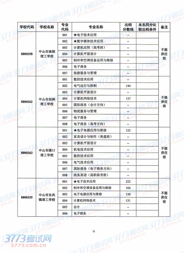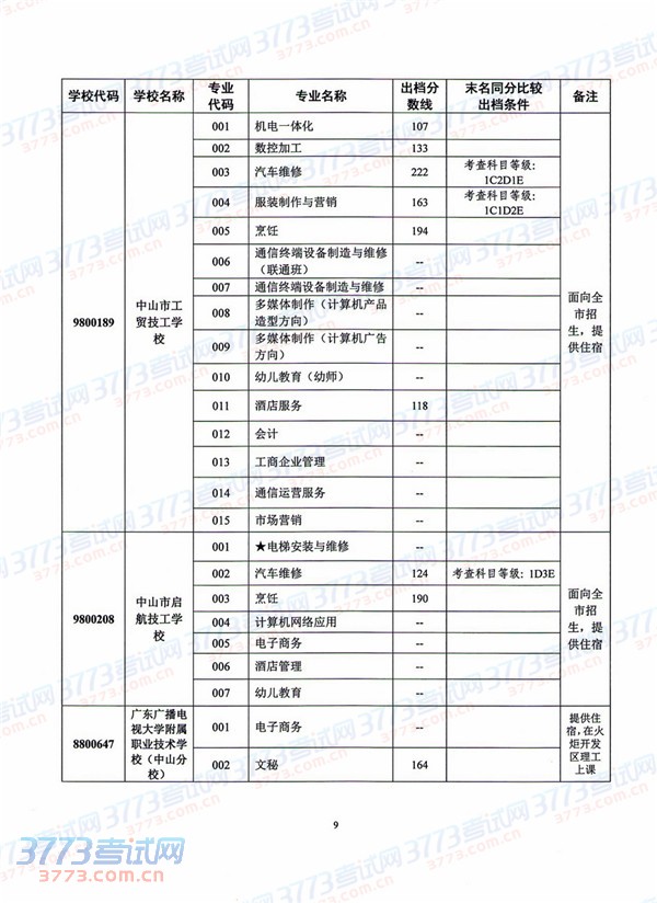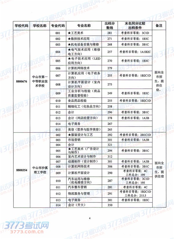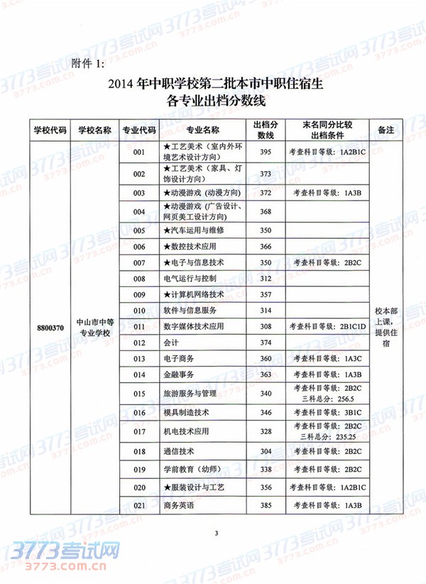 [组图]2014中山市中职学校各批次专业出档分数线的通知