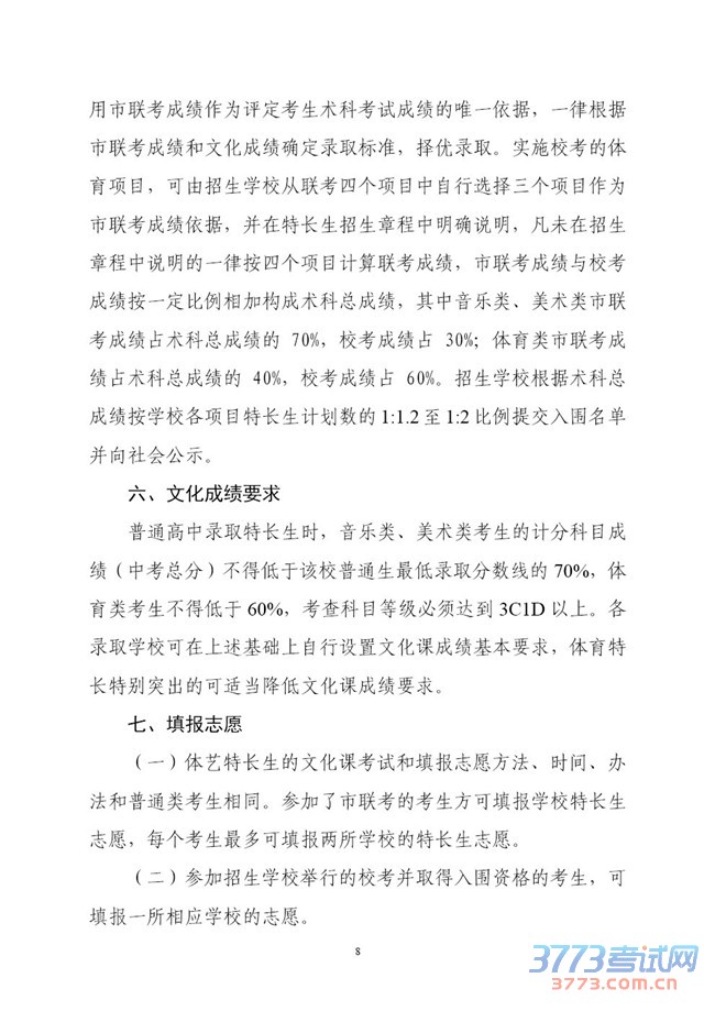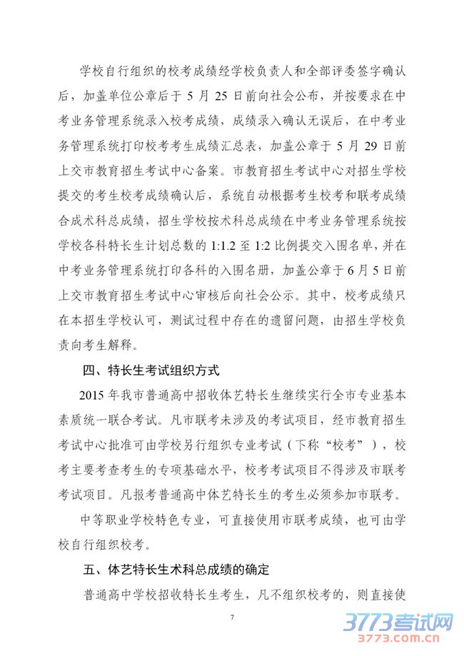 关于做好2015年普通高中招收体艺特长生统一考试工作的通知关于做好2015年普通高中招收体艺特长生统一考试工作的通知