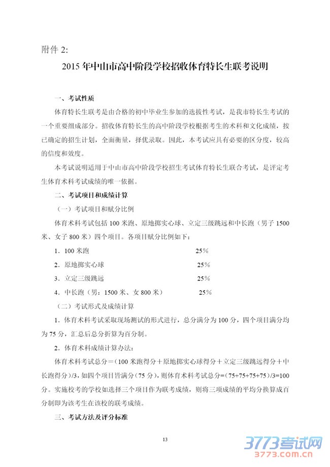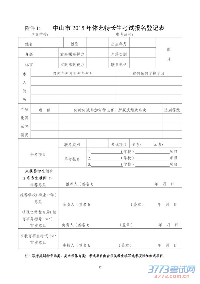 [组图]2015中山中考高中体艺特长生招生考试工作的通知