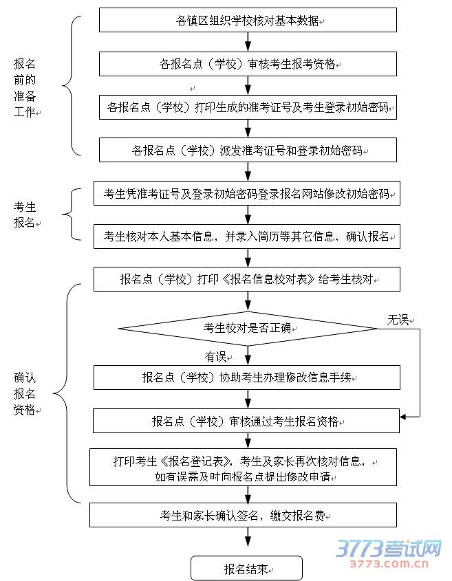 2015年中山市初中毕业生升学考试网上报名工作流程图