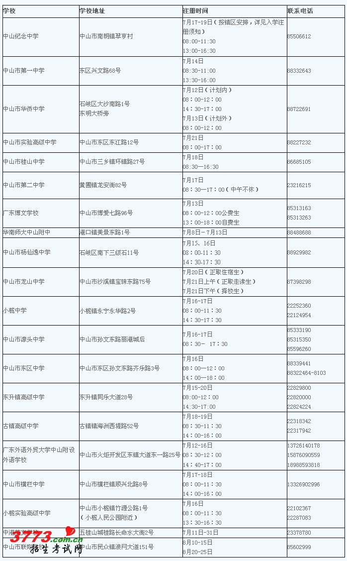 [图文]2012年中山市普通高中学校入学注册时间安排表及入学注册须知