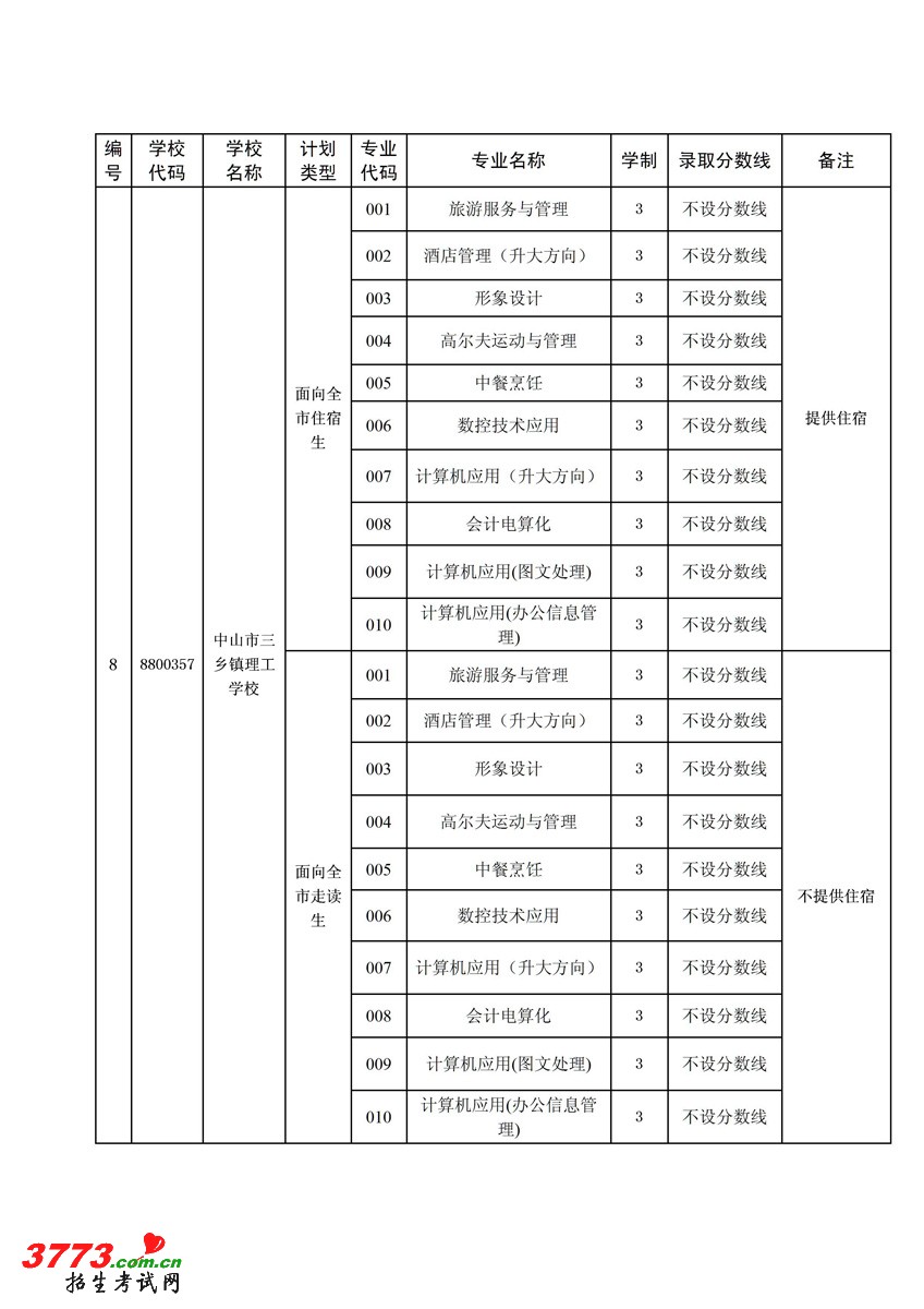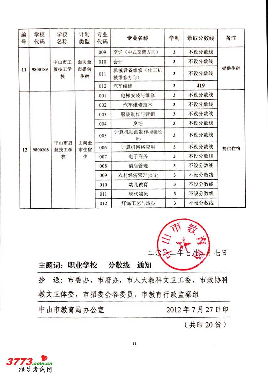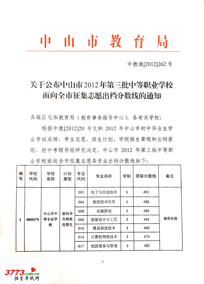 [组图]中山市2012年第三批中职学校面向全市征集志愿出档分数线