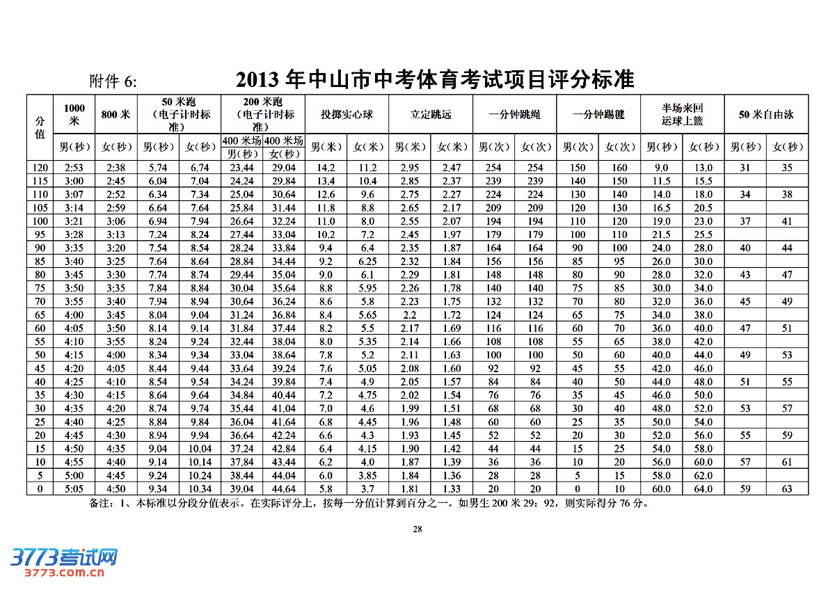[图文]2013年中山市中考体育考试项目评分标准