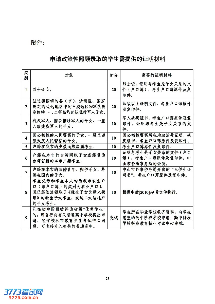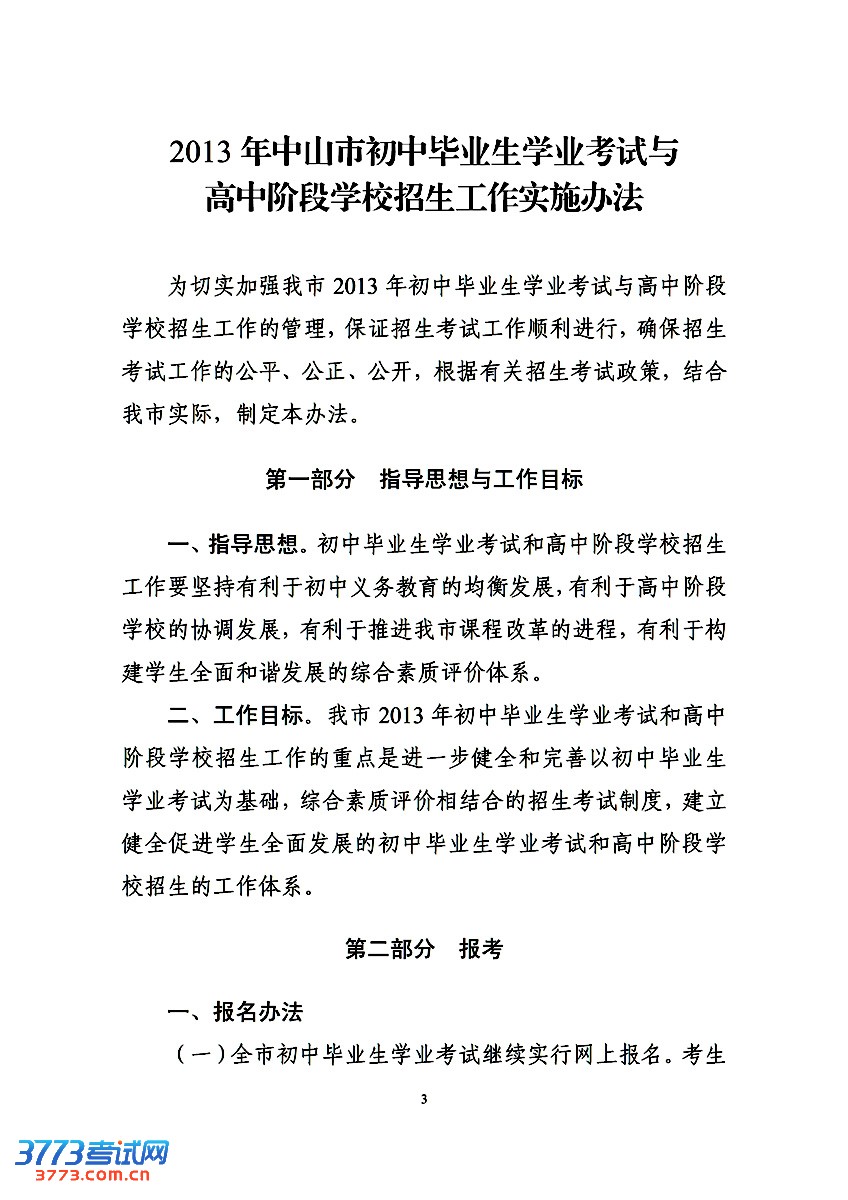 [组图]2013年中山中考与高中学校招生工作实施办法