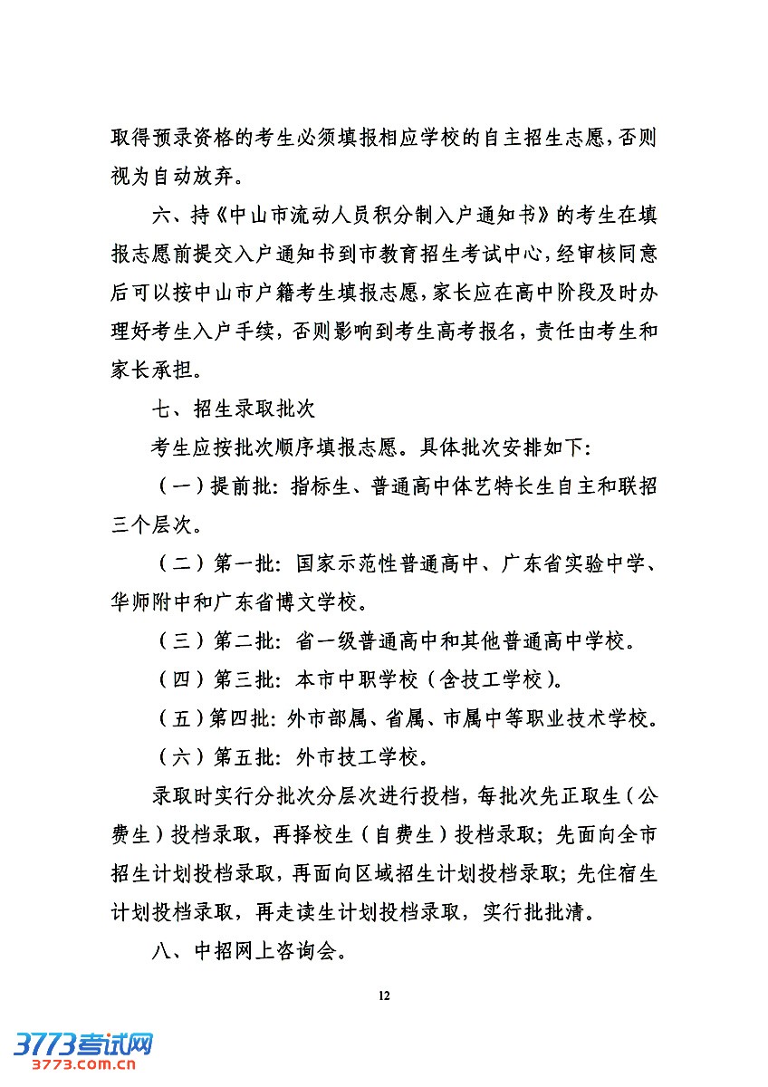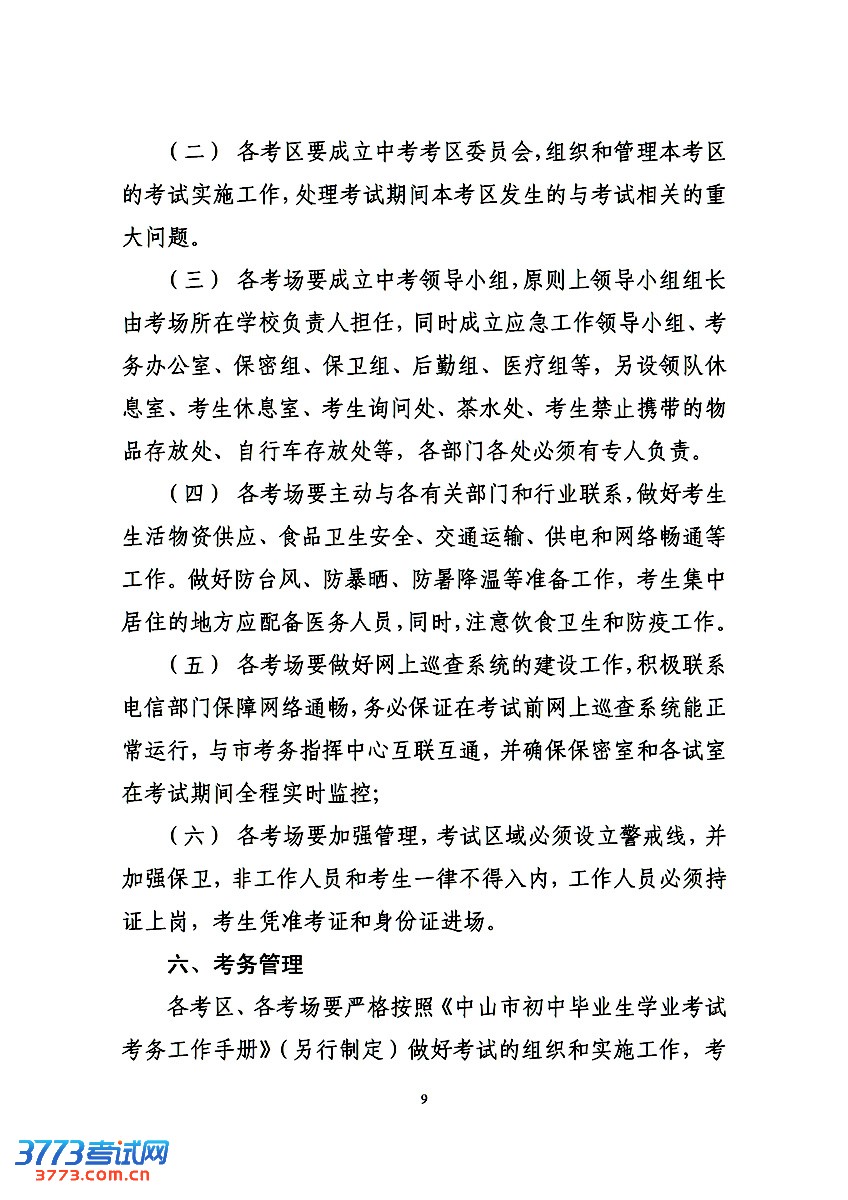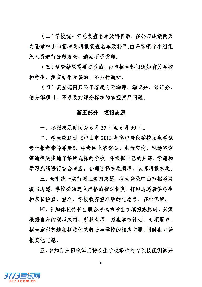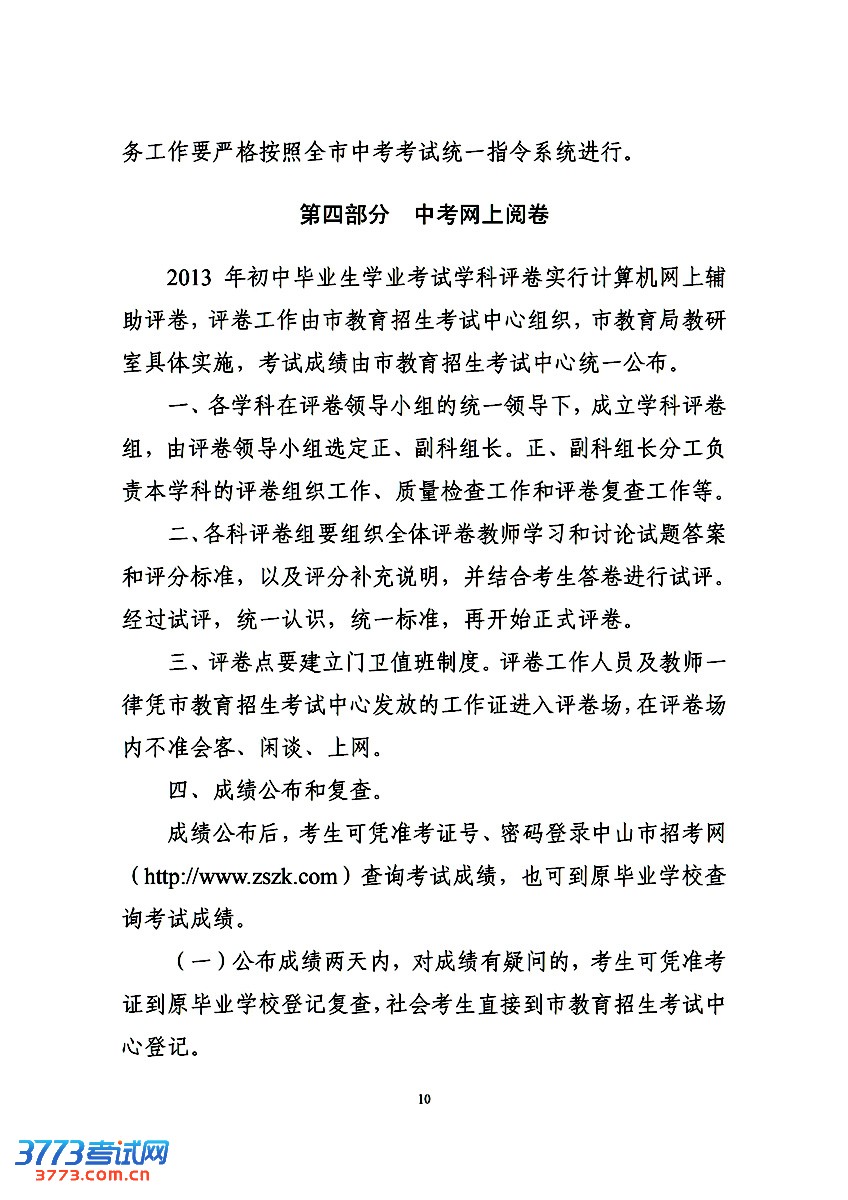 3773考试网2016中考中山中考正文