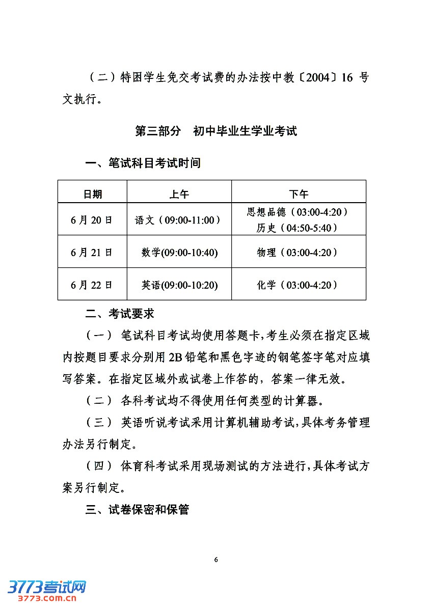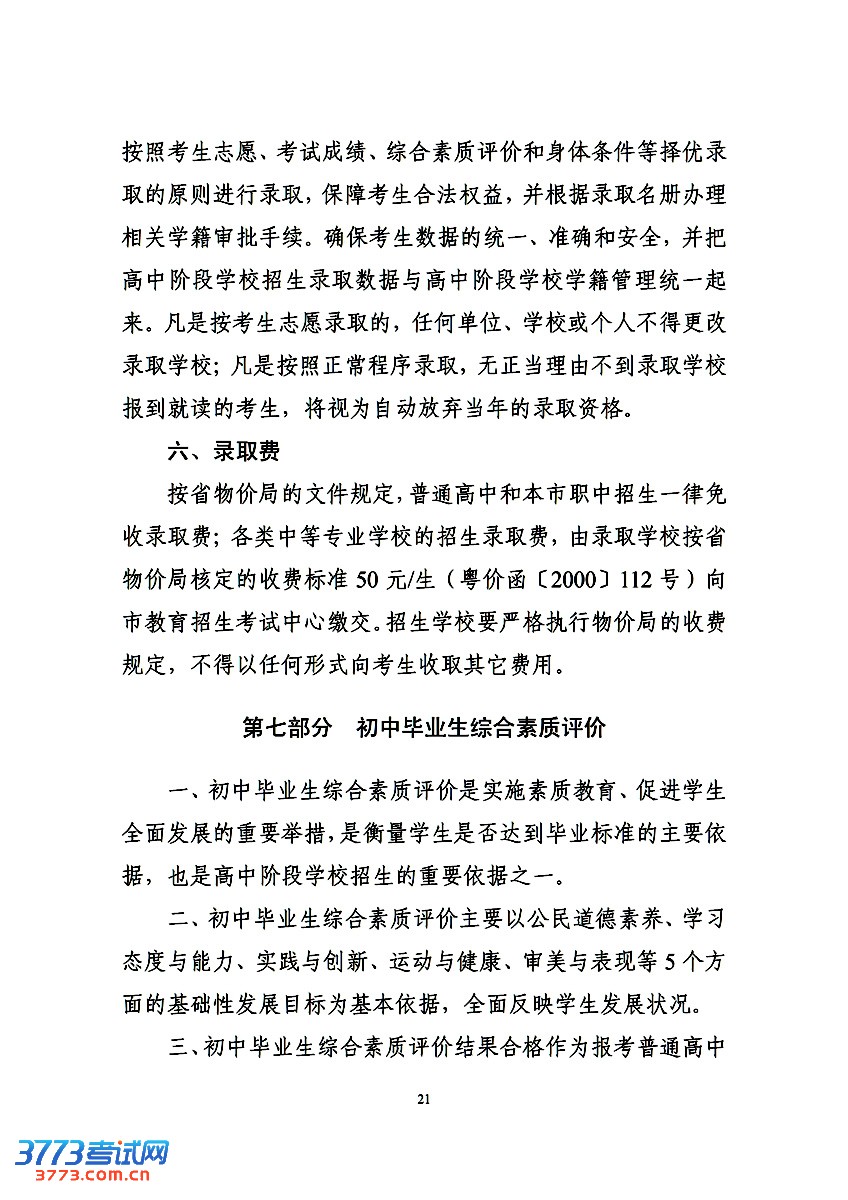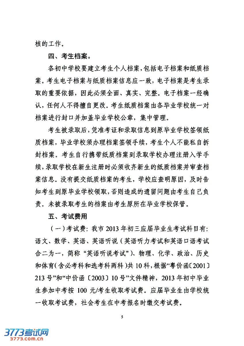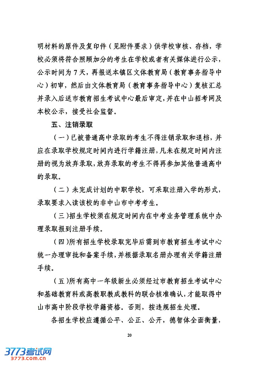 3773考试网2016中考中山中考正文