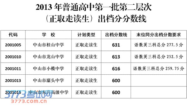 [图文]2013中山市桂山中学分数线(正取走读生)
