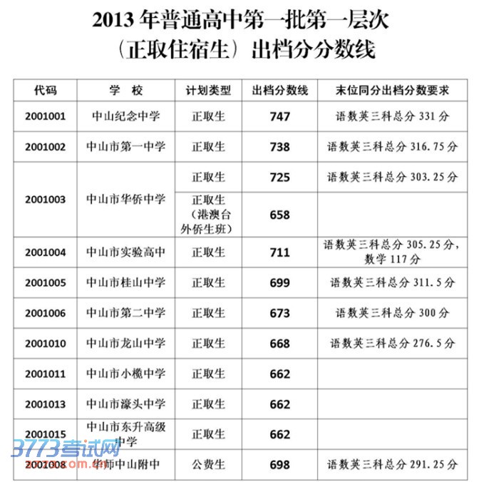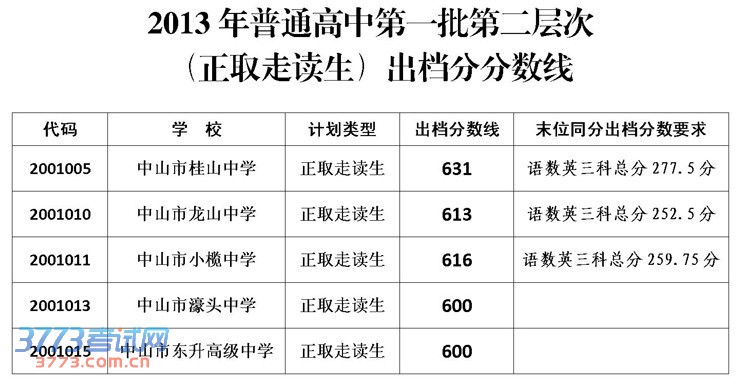 [组图]2013年中山市中考分数线公布