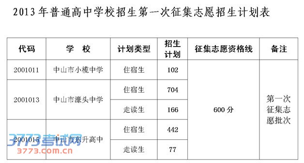 参加本次征集志愿的考生须在今日上午10时至7月9日上午12时这一时段内,自行登录中山市中考业务管理系统(http://61.142.114.234/)选择填报征集志愿,可填报住宿生志愿和走读生志愿各一个,征集志愿不分批次,具体招生计划如下: