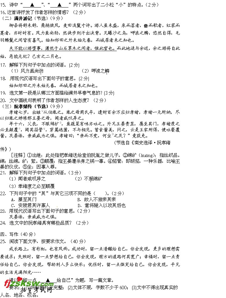 [组图]浙江舟山2011年中考语文试题及答案
