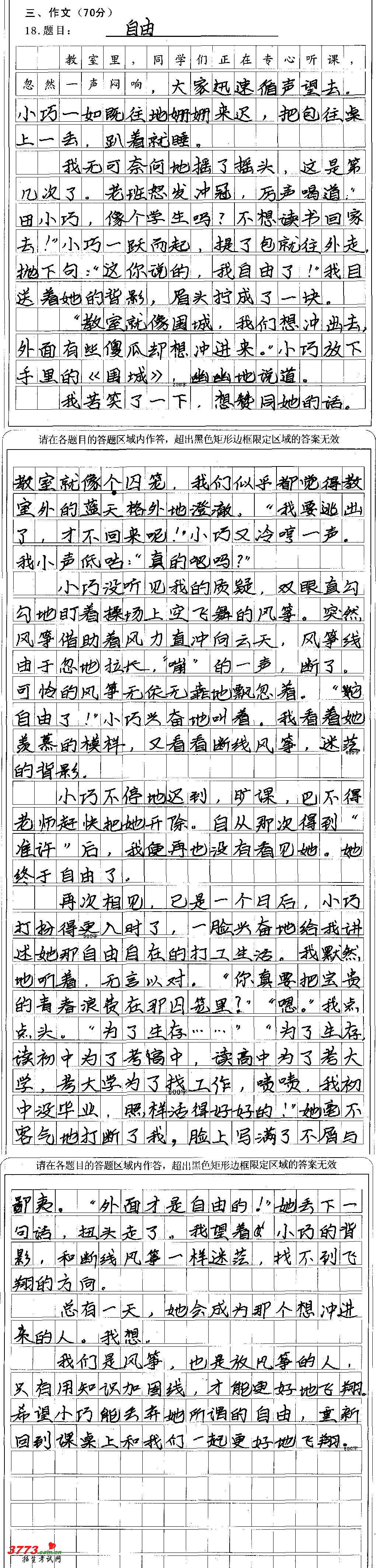 [图文]福建莆田2012中考满分作文欣赏:自由