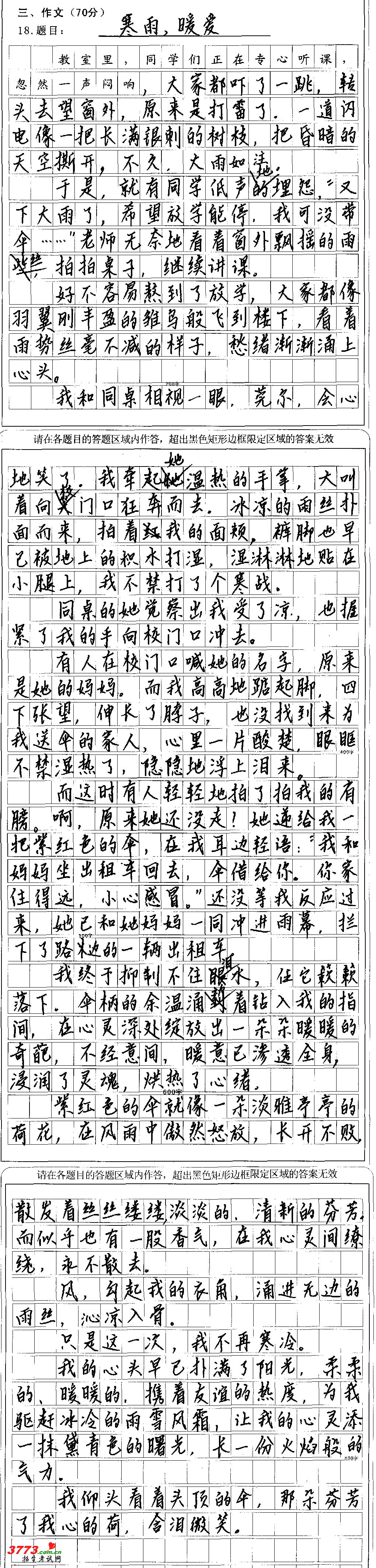 [图文]2012福建莆田中考满分作文欣赏:寒雨暖爱