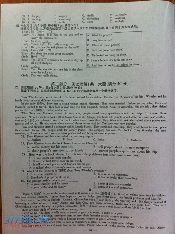 [组图]2014安徽中考英语试题答案及评分标准发布