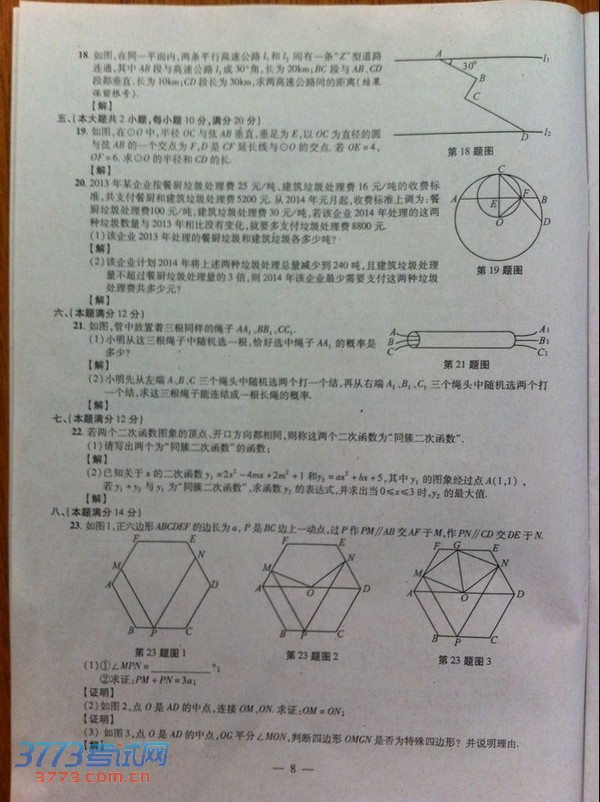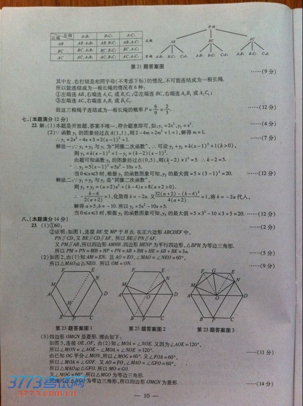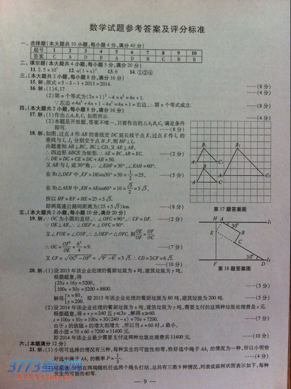 [组图]2014安徽中考数学试题答案及评分标准发布