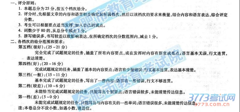 [组图]2015安徽中考英语答案及评分标准发布