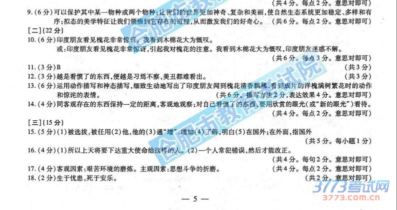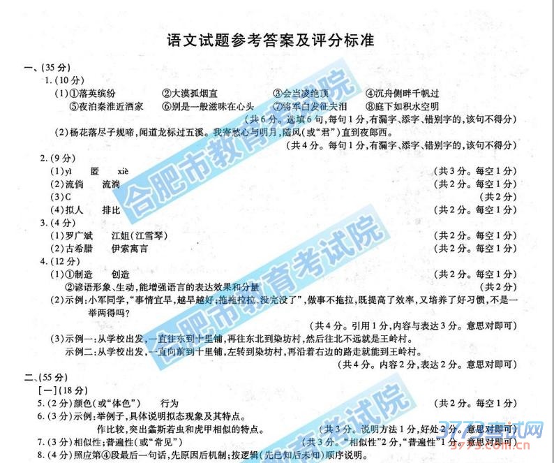 公布安徽中考试题、答案和中考作文。祝各位考生都能取得好的成绩。2015年安徽中考语文答案(图片版):