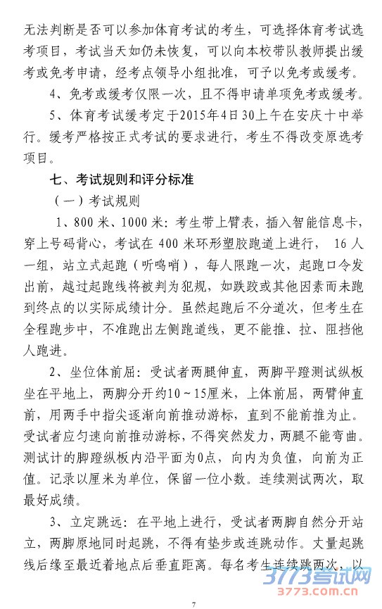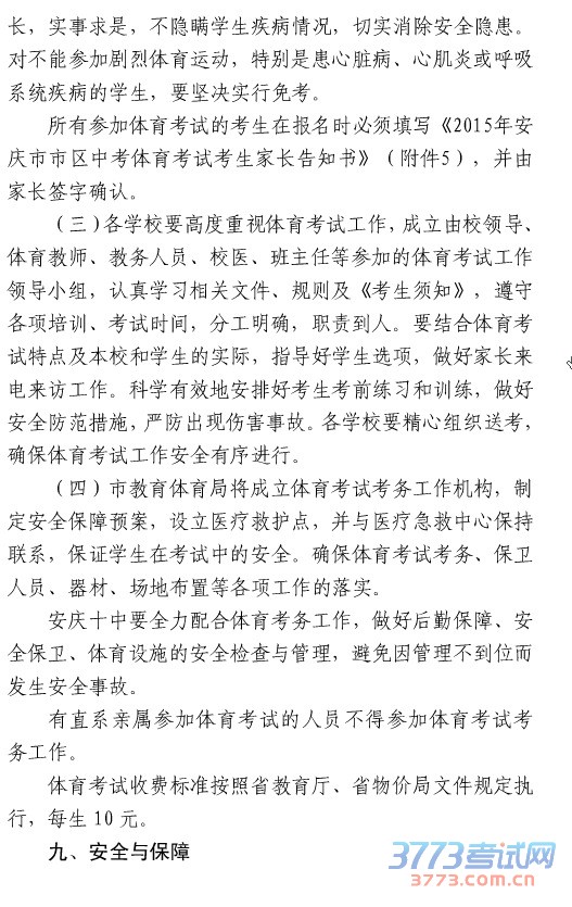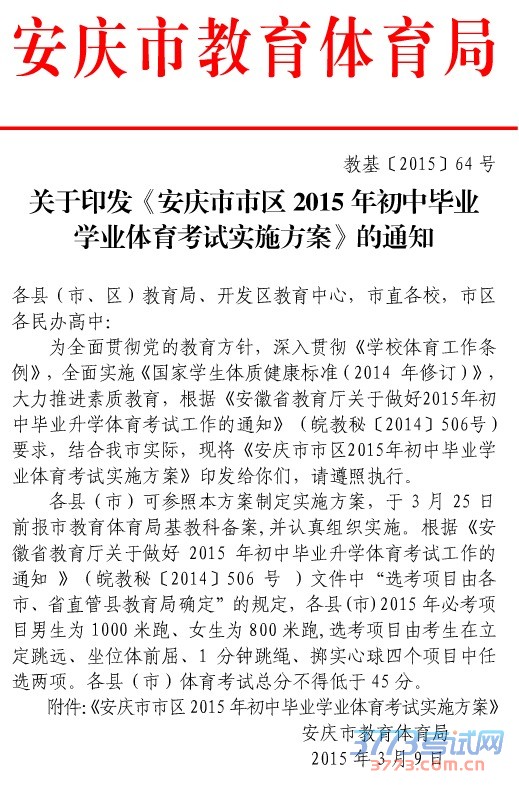 关于印发《安庆市市区2015年初中毕业学业体育考试实施方案》的通知