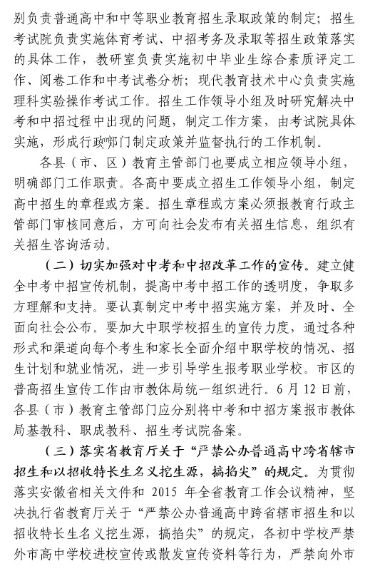[组图]安庆市教育局2015安庆中考高中招生工作通知