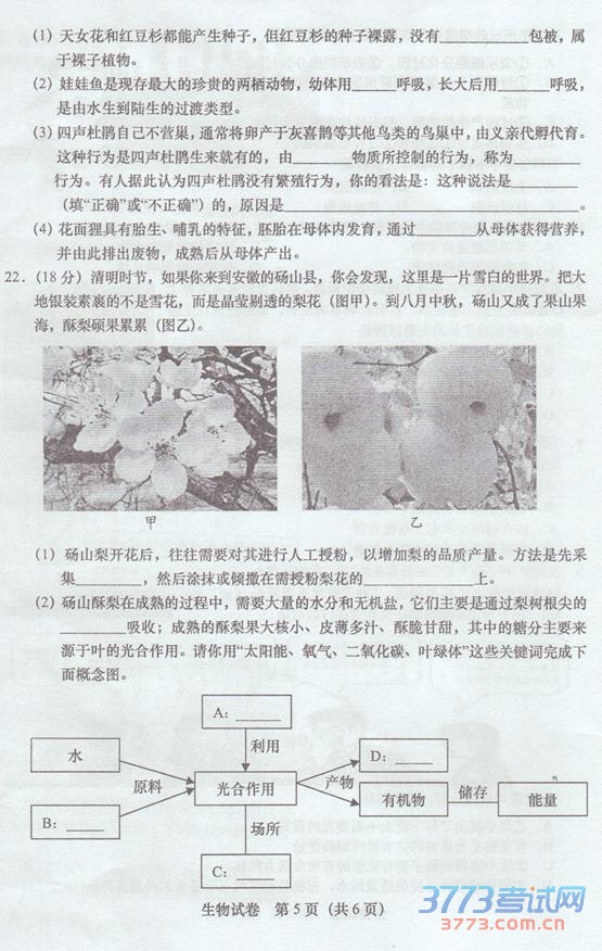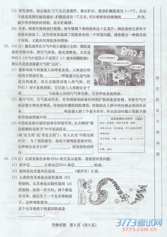 [组图]2015安徽安庆桐城初二会考生物试题及答案
