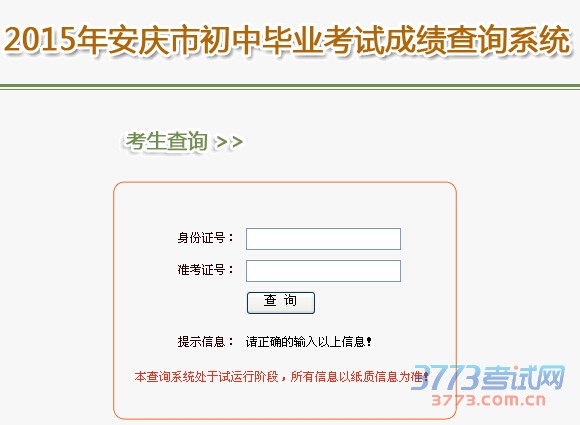 2015年安徽安庆中考成绩查询入口现已开通!考生从7月3日11:30起可登录安徽安庆中考查分系统【安庆教育体育网】查询本次考试成绩!