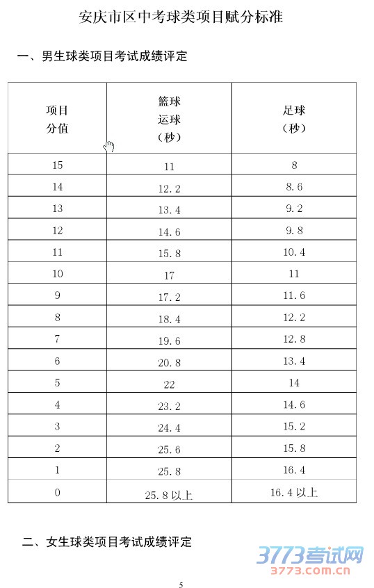 [组图]安庆市区2016年中考球类项目考试办法及赋分标准