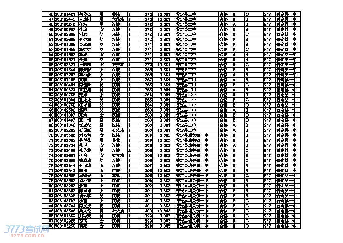[组图]2014安顺中考省级示范性高中配额生录取名单