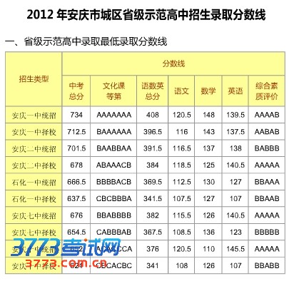2012安庆一中中考录取分数线2012安庆一中中考录取分数线