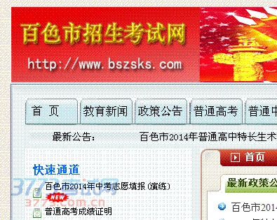 [图文]2014百色中考成绩查询网站:百色招生考试网