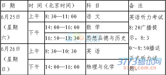(二)2016年全省统一的初中毕业学业考试时间为6月25日至26日。各科具体考试时间如下: