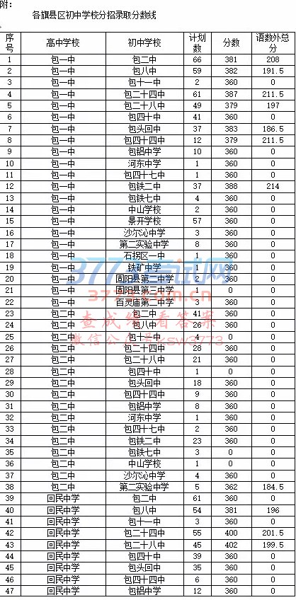 2、包头蒙中全市范围招生录取分数线:380分,语数外194分