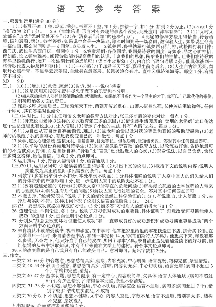 2012本溪中考九年级第二次质量测试语文答案2012本溪中考九年级第二次质量测试语文答案