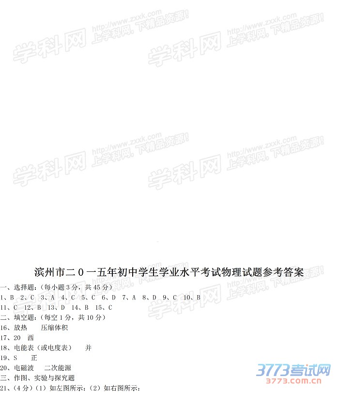[组图]2015滨州中考物理试题及答案发布