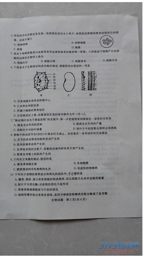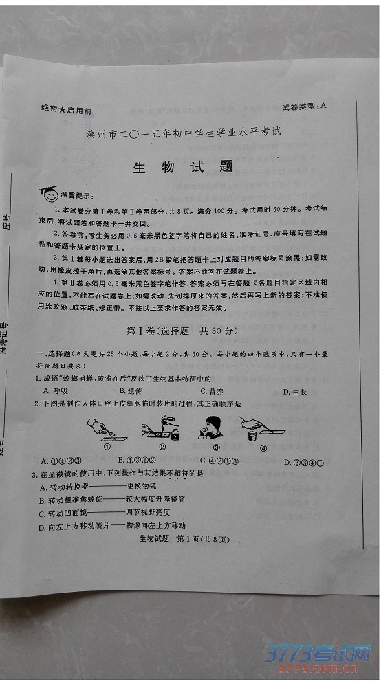及时公布滨州中考试题、答案和中考作文。祝各位考生都能取得好的成绩。2015山东滨州中考生物试题(图片版):