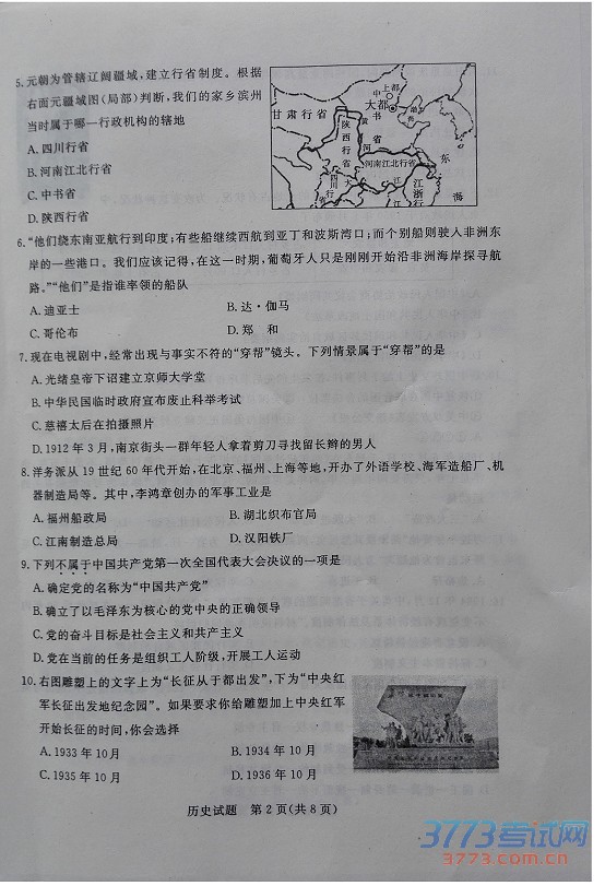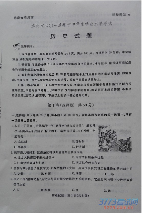 [组图]2015滨州中考历史试题发布