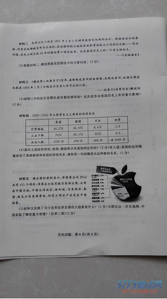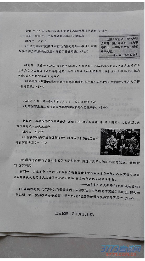 山东省滨州市2015年中考历史试题(扫描版,无答案)7