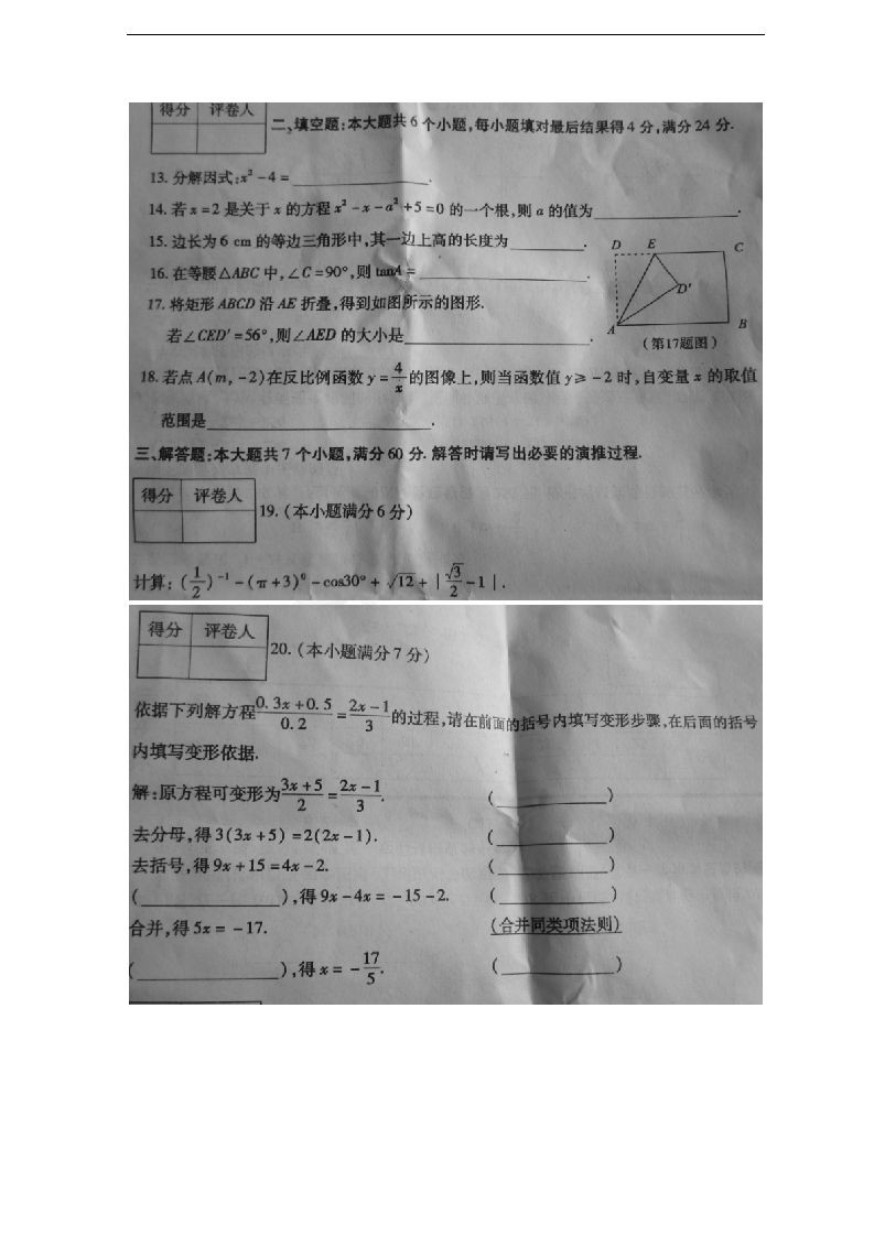 [组图]山东滨州2011中考数学试题