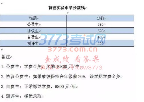 近日,育德实验中学同步公布了录取分数线,而且规定中考分数达到580分的公费生,学费可以全免,外加奖励10800元。