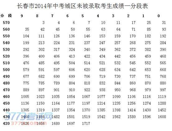 [图文]2014长春中考未被录取考生成绩一分段表出炉