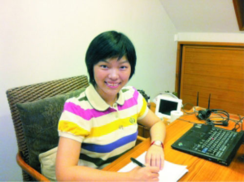 小传:在班里是班长。虽然是个女孩,爱好却是体育,足球、篮球、羽毛球、 滑雪、滑冰、花式滑板,样样都行。但都没有通过老师来教,而是自学。此外,擅长应变能力与领导能力,组织能力强,因此在同学中的威望比较高。将来打算在金融或政治方面发展。比如在投资银行工作,也希望能当公务员。