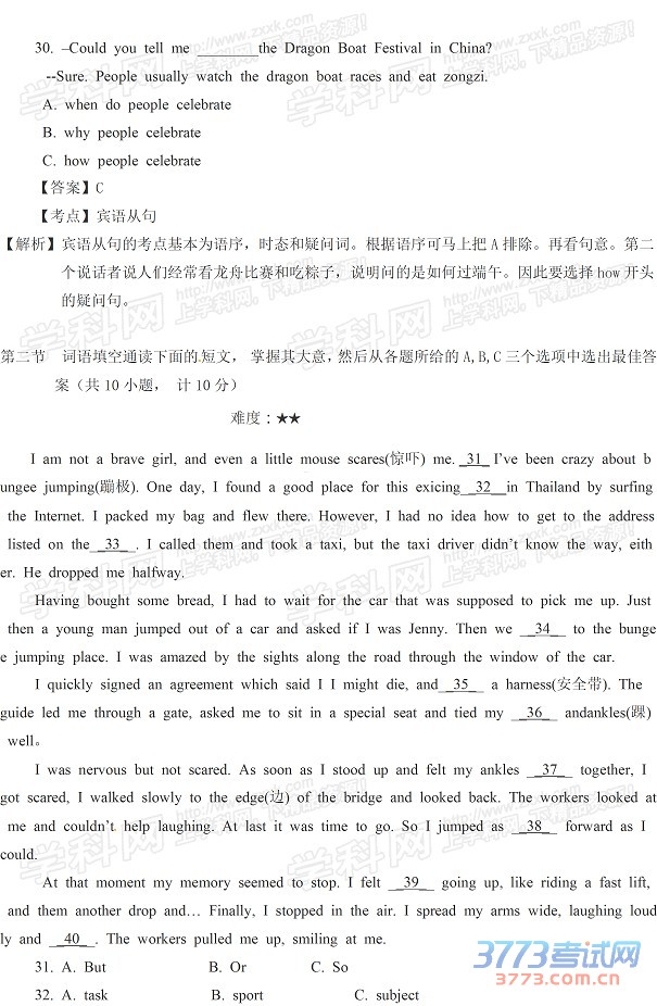 [组图]2015长沙中考英语试题及答案解析发布