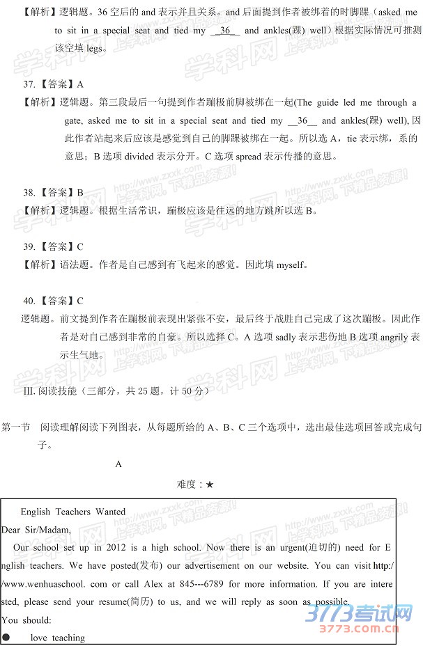 [组图]2015长沙中考英语试题及答案解析发布