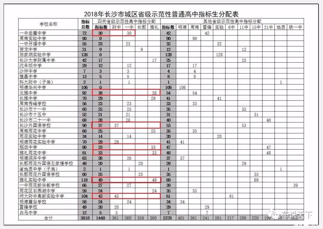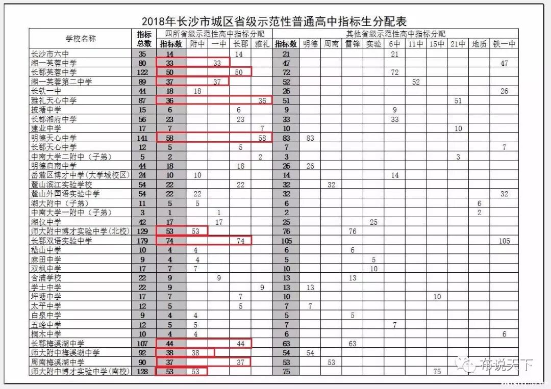 18、一中岳麓中学,30个一中本部指标。