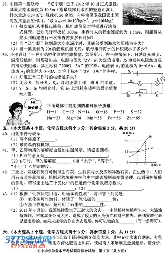 [组图]2013年长沙中考理综试题试卷