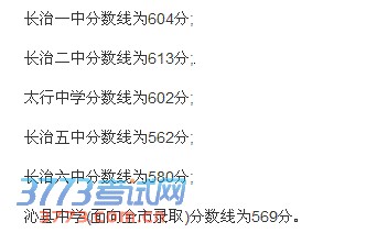 山西长治2013年中考录取分数线公布,指标生最低录取控制分数线为450分。