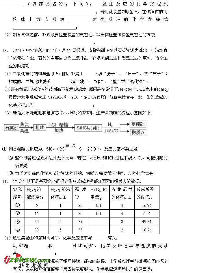 [组图]安徽巢湖2011年中考试化学试题及答案