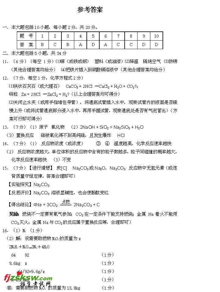 [组图]安徽巢湖2011年中考试化学试题及答案