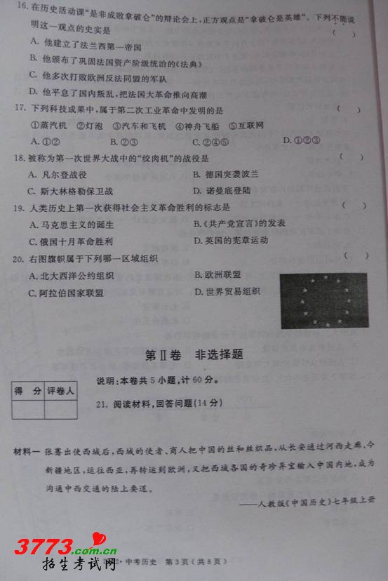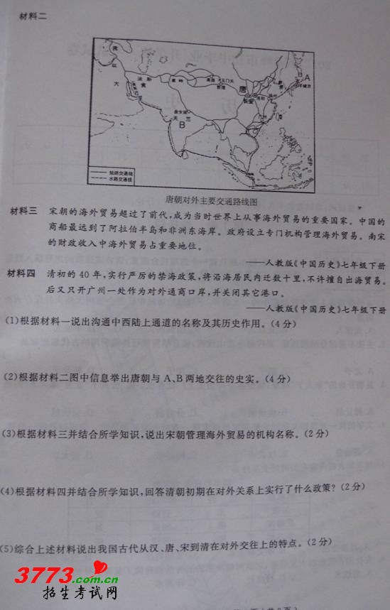 [组图]2012年内蒙古赤峰市中考历史试题及答案