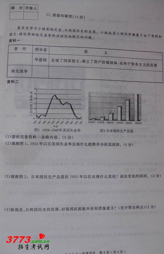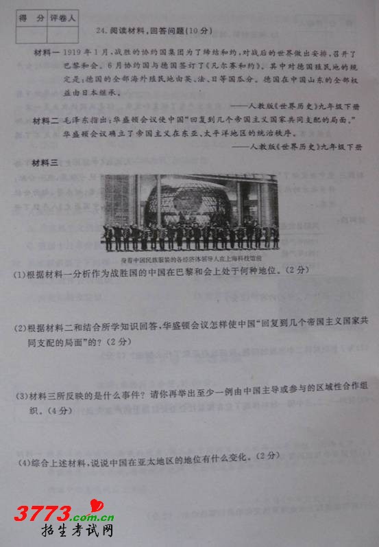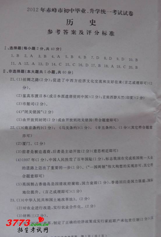 [组图]2012年内蒙古赤峰市中考历史试题及答案