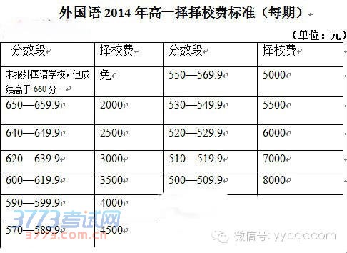 [图文]2014云阳县中山外国语学校录取分数线择校费